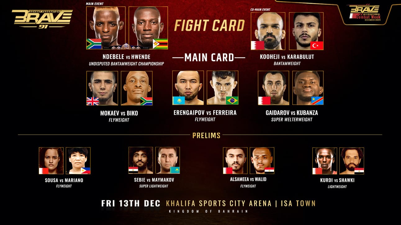 BRAVE CF returns to Bahrain on December 13 with an action-packed fight card for BRAVE International Combat Week. The most global MMA organization in the world, BRAVE Combat Federation, has announced a stacked fight card for its return to Bahrain on December 13 with BRAVE CF 91.