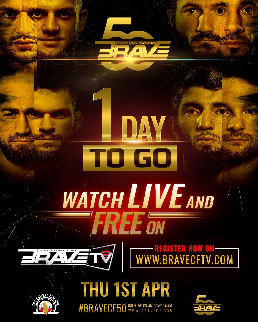 BRAVE® Combat Federation will put on a celebration for the ages as the fastest-growing organization in the world reached 50 events done in little over four years. With BRAVE® CF 50 taking place tomorrow, April 1st, in the beautiful Arad Fort, at Kombat Kingdom, the promotion will officially become the first to travel to 21 countries in its first 50 shows. BRAVE® CF 50 will feature the strongest line-up in the history of the promotion, with world-class athletes from more than 20 nations expected to be in action for the entertainment of BRAVE® Nation. The historic event will be headlined by a Super Welterweight title fight. Jarrah Al-Silawi, widely recognized as the best-ever Arab fighter, will defend his crown against top contender Ismail Naurdiev. In the co-main event, Mohammad Fakhreddine will attempt to make history as he will look to become the first Aravb athlete to hold world titles in two weight-classes at the same time. Currently holding the Middleweight belt, ‘’The Latest’’ will face off against Mohammed Said Maalem for the vacant Light Heavyweight crown. Also set for fight night are two legs of the prestigious Flyweight Tournament, which will determine the first-ever divisional world champion at BRAVE® CF. In the last quarter-final, Russia’s Ali Bagautinov takes on Dustin Ortiz, from the United States as two top, world-class Flyweights go at it for a spot in the semifinal against Jose ‘’Shorty’’ Torres. In the other Flyweight tournament bout, Zach Makovsky takes on Velimurad Alkhasov in a rematch of a fight won by Zach at BRAVE® CF 34. The winner will be the first finalist of the tournament. Don’t miss the chance to watch the biggest and brightest mixed martial arts talent from across the globe on the fourth and most special installment on the Return To Kombat Kingdom, BRAVE® CF 50 on April 1st live on BRAVE® CF TV. Click here to Register Now!