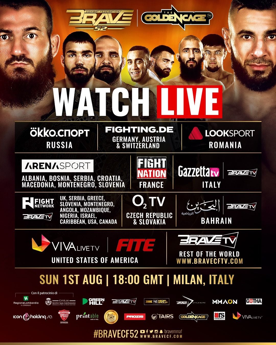 You can watch BRAVE® CF 52: Bad Blood on the above-listed broadcast partners in your country and FREE only on bravecftv.com for the rest of the world!