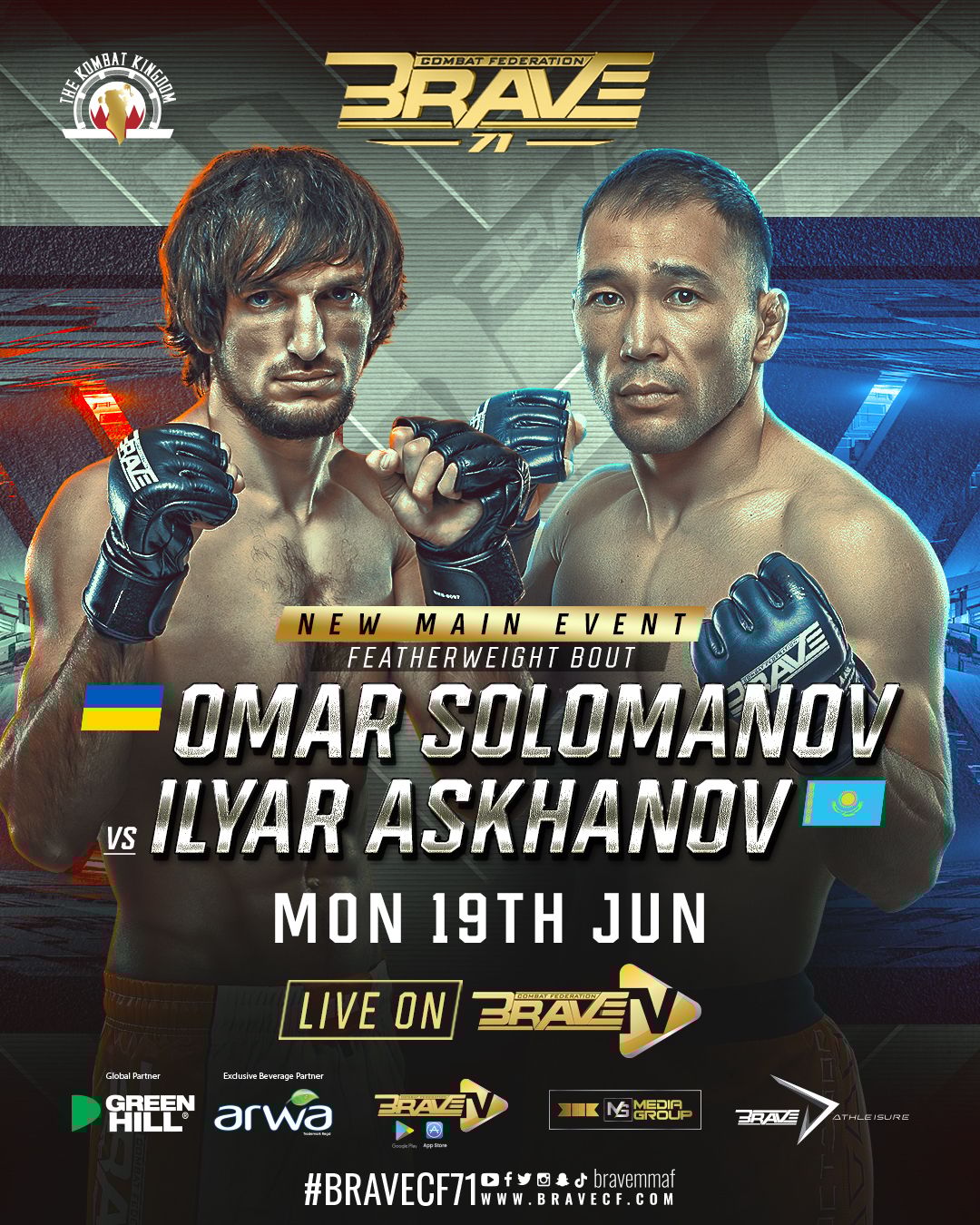 BRAVE Combat Federation has announced the full fight card for the first of two events in the Kingdom of Bahrain. On June 19, the most global organization in MMA lands home for BRAVE CF 71, before BRAVE CF 72 takes place four days later, on June 23๐ฅ